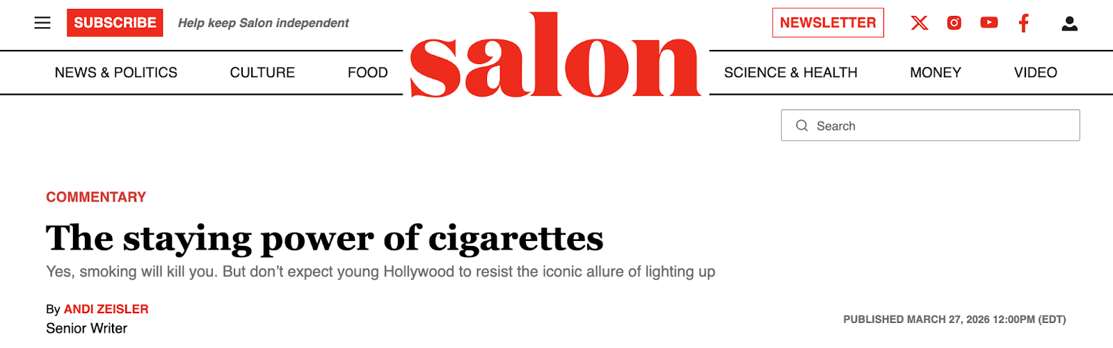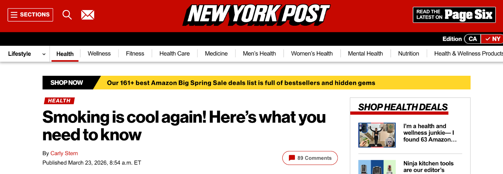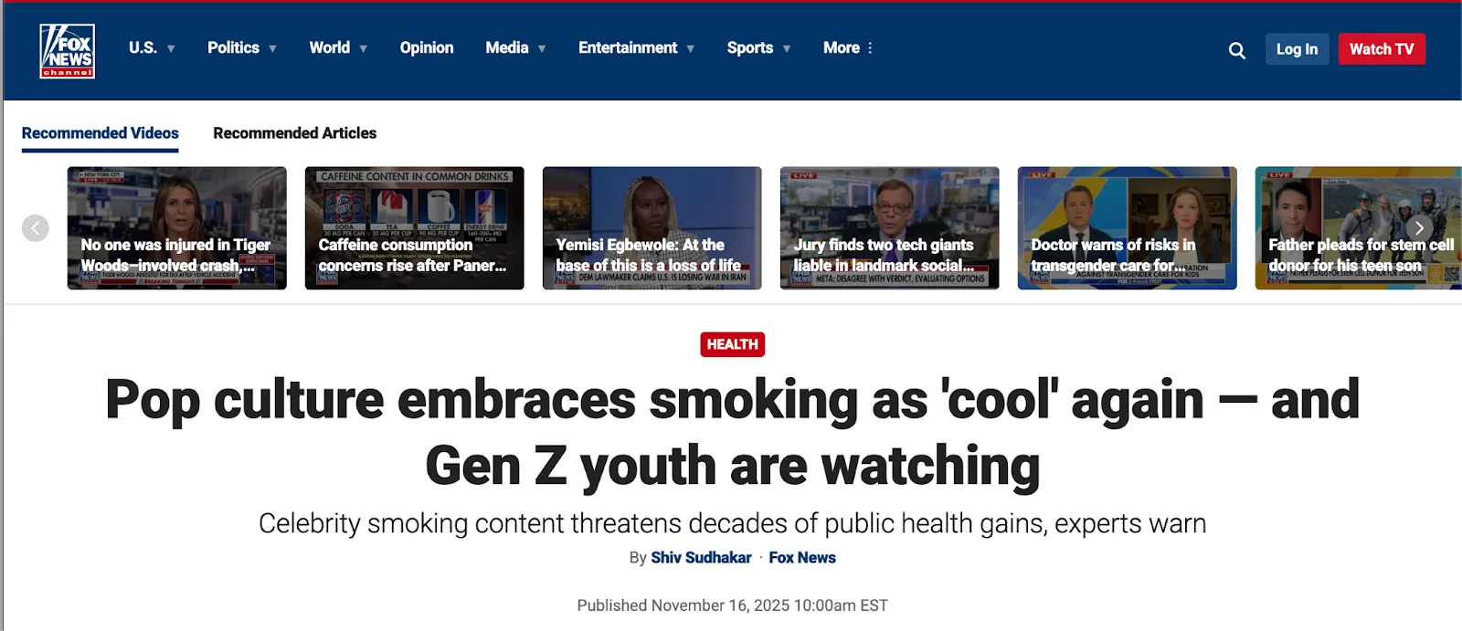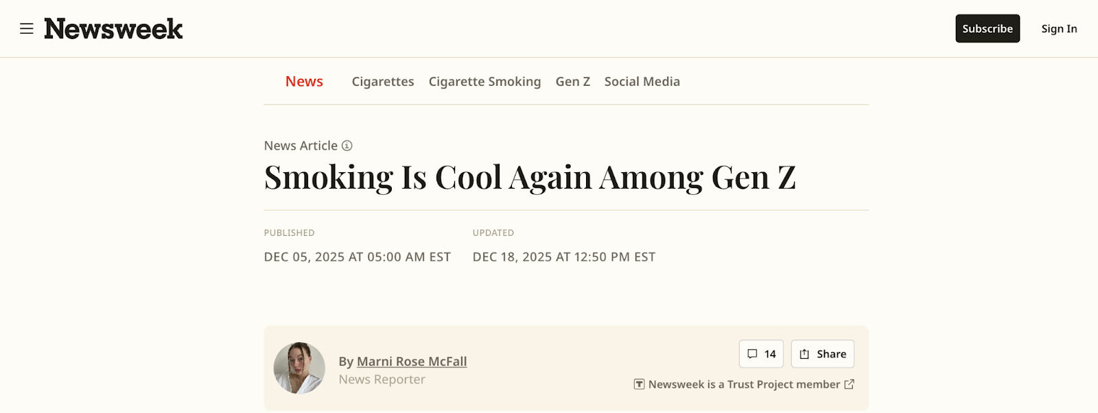 I’m going to call it. Smoking is not cool again. A few influencers or pop stars lighting has not moved the needle in any credible way. The thing is, despite all the garbage they’ve been fed, youths know that there are far safer ways to consume nicotine, and that’s reflected in the data.