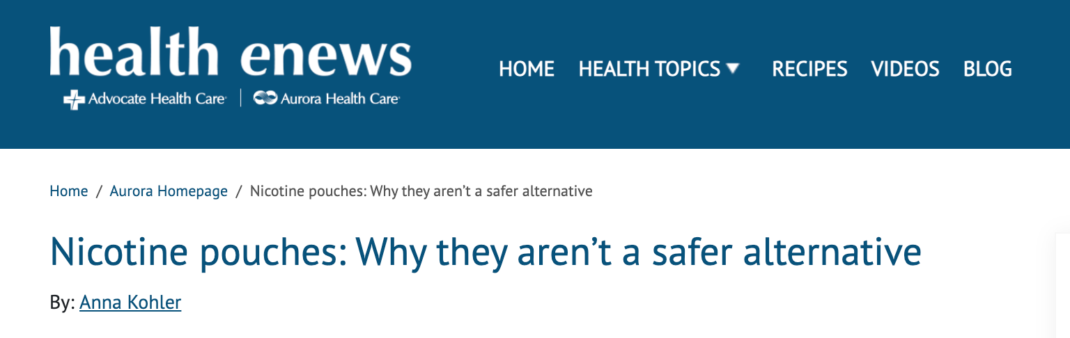 So much of tobacco control public health communication centres on a few common precepts, such as creating a false consensus through headline trickery, pretending to misunderstand concepts and data, and making false or tenuous claims without support. A recent article about nicotine pouches in Health eNews, which is funded and operated by the U.S. nonprofit health system Advocate Health, fits the bill for all three.