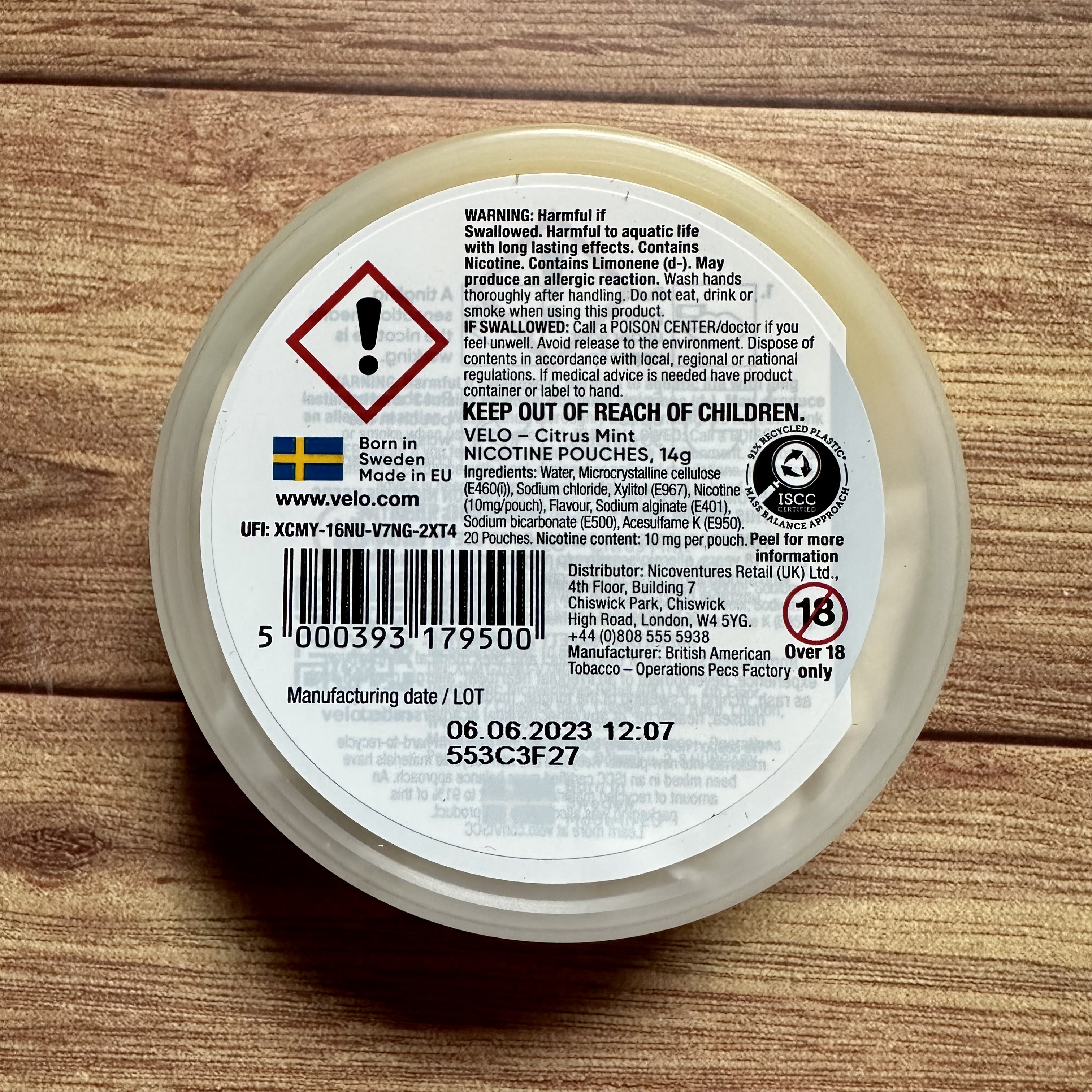 Now, let's talk about the product itself. VELO (a brand of 'British American Tobacco') describes the pouches as a fusion of zesty lemon and peppermint, and that's pretty much what you get. When you open the can, the citrus aroma is unmistakable, with a slight undertone of peppermint.